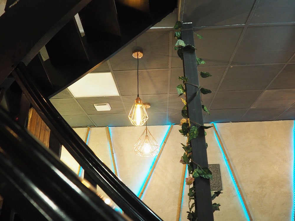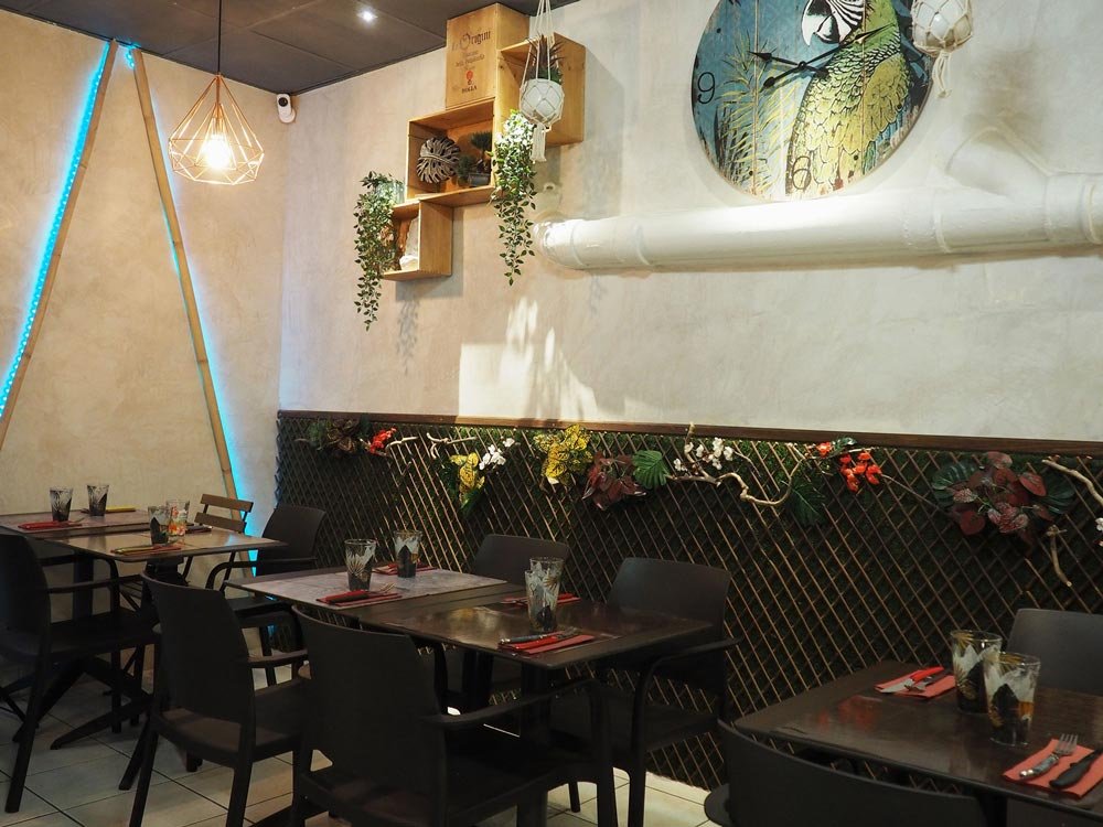 On a une superbe salle, joliment décorée de bois, de verdure et de néons. Une décoration exotique pour nous faire sortir du cadre parisien, mais malheureusement la salle étant petite, cela me rappelle que je suis toujours à Paris. Je vous conseille de réserver pour être tranquilles (dans tous les cas, pour les restaurants de ce type il faut toujours réserver car généralement on est accueillis dans des petites salles)