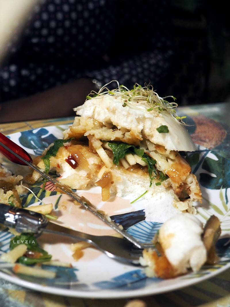 Il faut que je vous parle de ce riz gluant, il m’a totalement marqué ! Sûrement parce qu’ici nous avons un vrai riz gluant : ce n’est ni trop « liquide », ni trop visqueux. Vraiment, c’était super bon. Et si je vous dit ça, c’est parce que la plupart des restau nous servent du riz qui ressemble à rien car on a souvent une espèce de riz sans saveur qui est soit collant, soit normal et on se demande s’ils ont compris le concept du riz gluant (à Paris je vous dis c’est la loterie). Par contre, si vous avez vu ma vidéo, on peut voir qu’ils utilisent du bambou et ça me fait moins kiffer pour la déforestation.