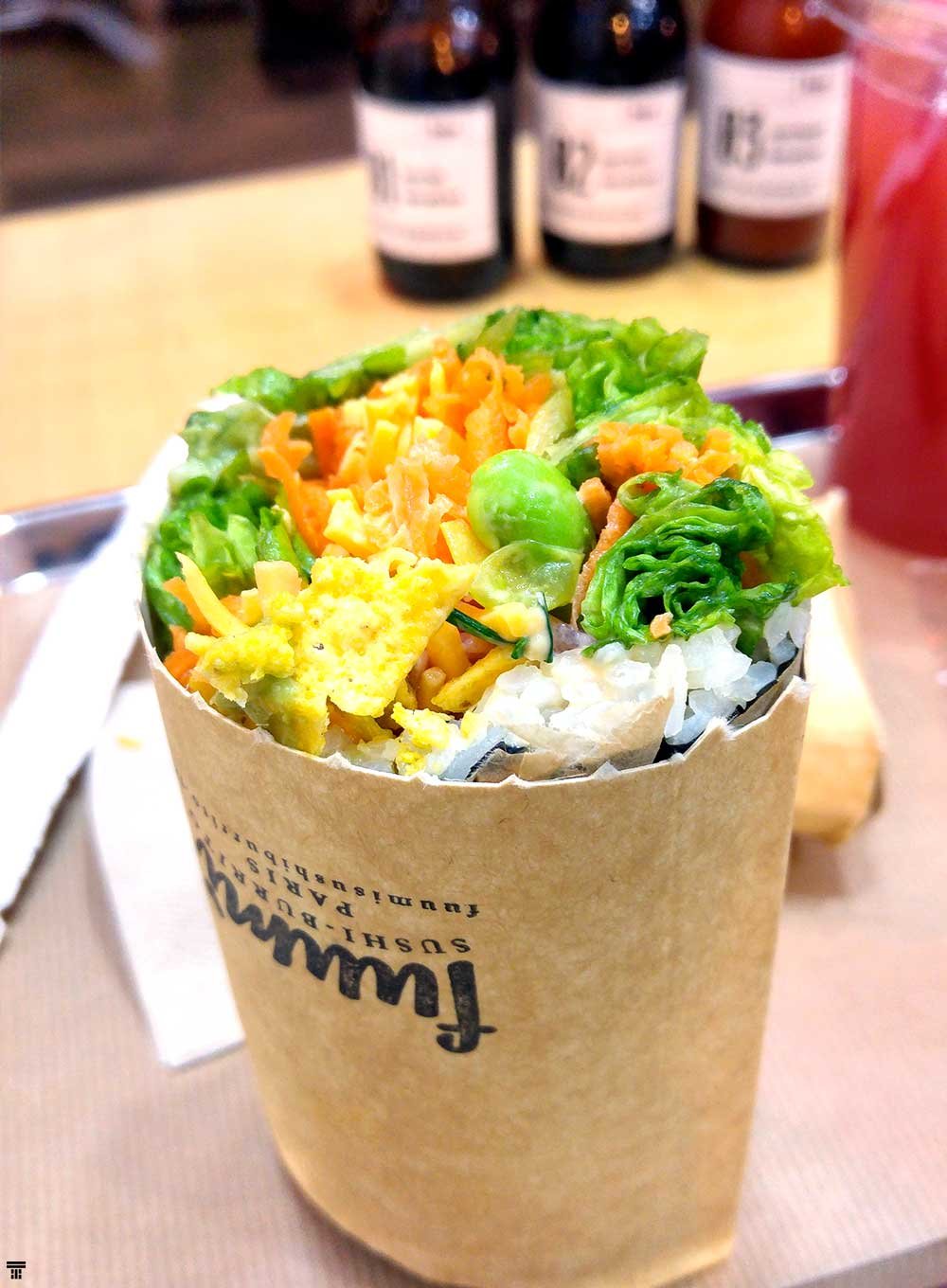 Fuumi Sushi possède un concept fort sympathique qui m’a plu dès que j’ai vu les images du restaurant sur Instagram. Je me rappelle d’une image en particulier où on voyait un gros rouleau de maki bien garni en ingrédients : saumon, salade, chou, carottes… Je pensais au départ que c’était en Amérique, mais non ! C’était bien en France. J’ai ensuite parcouru leur site et Instagram, vraiment tout donnait envie ! Et bien sûr qu’a dit mon palais ? « Vas-y demain ! » Du coup, étant une folle de la nourriture japonaise j’ai mis Fuumi Sushi en haut de ma liste de tous les restaurants à tester.