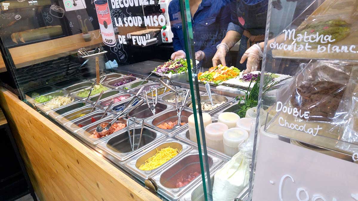 La nourriture de Fuumi Sushi est un mix de deux pays qui n’ont rien à voir l’un avec l’autre : le Japon et le Mexique. Ce mélange de deux cultures permet à Fuumi Sushi de réaliser des recettes fraîches et originales pour les plus gourmands : burritos, bowls, tacos, nachos-bowls… Tout est fait maison et surtout en face de soi ! On peut notamment choisir les ingrédients à mettre à l’intérieur de nos plats, un peu comme Subway : on leur demande ce que l’on veut au comptoir et ils ajoutent les ingrédients au fur et à mesure. Si vous avez du mal à vous décider, il existe également des formules toutes prêtes.