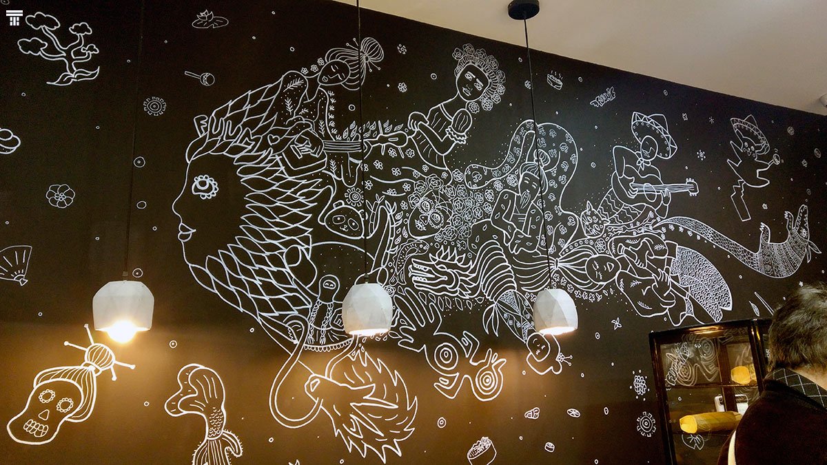 Situé au 124 Avenue Parmentier (75011 Paris), nous nous sommes retrouvés dans une petite salle avec un décor chaleureux où les murs affichent des dessins mêlant des influences du Mexique et du Japon. Ceux-ci ont été réalisés par des streets artists Parisiens sélectionnés par les clients de Fuumi Sushi via les réseaux sociaux. La seule chose que je trouve dommage est le manque de place, vous pouvez dire adieu à votre intimité. Je ne sais pas trop comment sont les 2 autres restaurants (toujours à Paris) mais à Parmentier c’est un peu petit !
