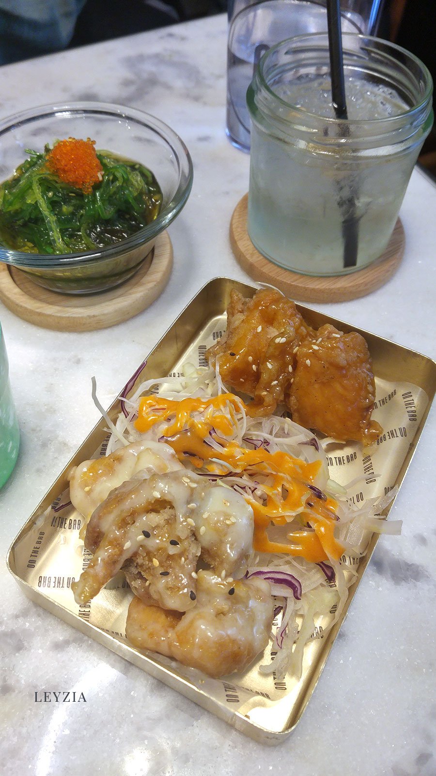 Quant à la carte, j’étais plutôt amusée par le jeu de mots qu’ils ont réalisé avec le nom du restaurant. On The Bab veut dire « Sur le riz » (bab = riz en coréen), donc pour départager leurs spécialités, ils ont mis « On The Rice », « On The Side » et « On The Buns ». Ce sont les trois spécialités du restaurant qu’ils ont regroupées dans la catégorie « On The…. ». J’ai par contre été déçue de ne pas voir le jjajangmyeon et le bingsu sur la carte, mais pour le reste c’est assez varié ! On nous propose des plats traditionnels comme le bibimbap, le ragoût au kimchi, le toppoki, des rolls, des raviolis, des algues grillées… etc.