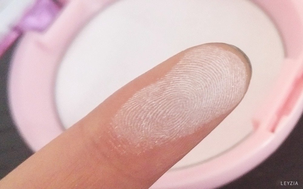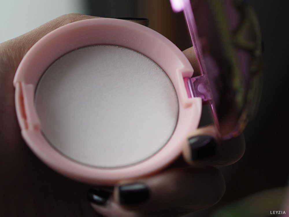 Si on regarde bien à la lumière du jour, la poudre contient des paillettes. Niveau couleur on est sur du blanc-rose, je l’utilise pour illuminer le visage avec un pinceau (je n’aime pas trop les houpettes, ça ne nous permet pas de répartir la poudre comme on le souhaite). Concernant le résultat, ça fait son travail mais il faut retoucher dans la journée.