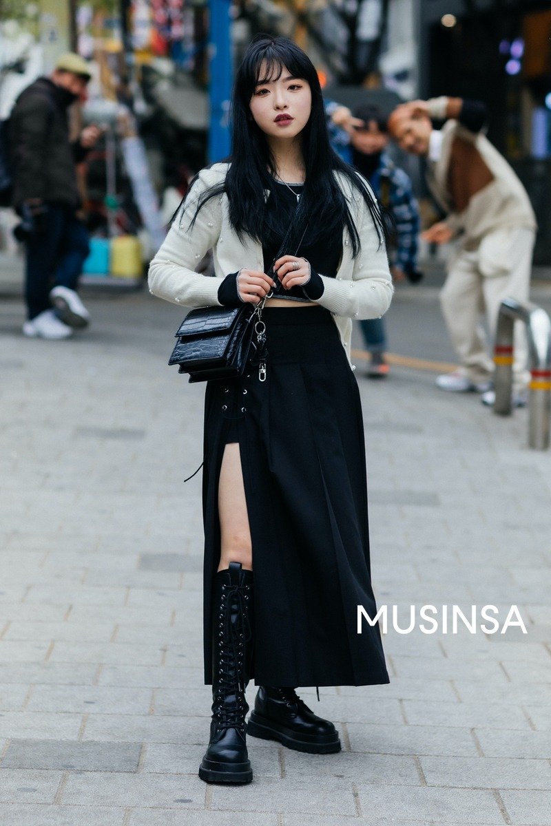 En cette saison, nous pouvons ressortir du placard les bottes blanches et/ou noires. Elles sont parfaites pour le printemps : il ne fait ni trop chaud ni trop froid, et c’est parfait pour nos petits pieds (bien sûr le mieux est de porter des vêtements légers en haut). Mais si cela ne vous botte pas, l’autre tendance est la mule ! Au vu de la température, c’est le moment de la ressortir, surtout celles à embout carré. Le carré ressort dans pas mal de boutiques, mais n’allez pas non plus vous ruer chez Zara exprès si vous n’en avez pas ! (#restezàlamaison) L’embout rond est aussi très bien. Sachez que les mocassins classiques sont également à la mode dans les boutiques coréennes, le modèle qui ressort beaucoup est le SMOOTH de chez Dr. Martens. Cette info provient des magazines, donc j’attends de voir ce que cela va donner en streetstyle. En attendant, regardons de plus près ce que nous pouvons faire avec avec les bottes et les mules.